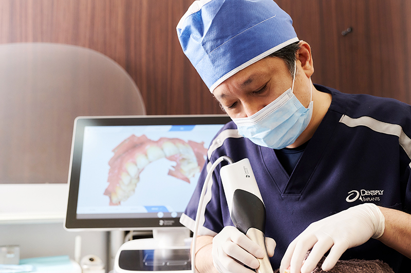 当院はインプラントに特化したクリニックです。 インプラントセンターとして他院の先生方からのご紹介・難症例など様々な症例に対応しております。 インプラントシステムはデンツサプライ・アストラテックインプラント・ストローマンのメーカーのみを使用しています。患者様のお口に入るものなので、設備環境においてもCT・Kavo製のチェア・プライムスキャンなど最先端の設備、安全かつクオリティの高いインプラント治療を提供しています。